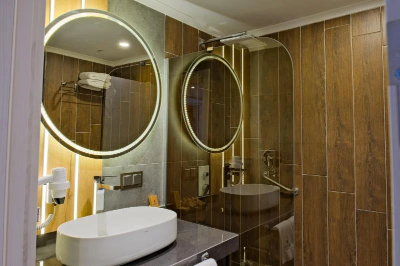 Located on Trabzon's coastline, Maritimo Hotel offers guests a delightful accommodation experience with its modern design and comfortable rooms. The hotel's "Standard Sea View Room" measures approximately 23 square meters and is equipped with a large double (king-size) bed. Ideal for two adults, this room offers accommodation overlooking the tranquil Black Sea. The room features air conditioning, a plasma TV, a minibar, a private bathroom, blackout curtains, soundproofing, and high-quality linens, along with complimentary Wi-Fi. A room where you can unwind after a busy day while enjoying the view offers both comfort and elegance.
